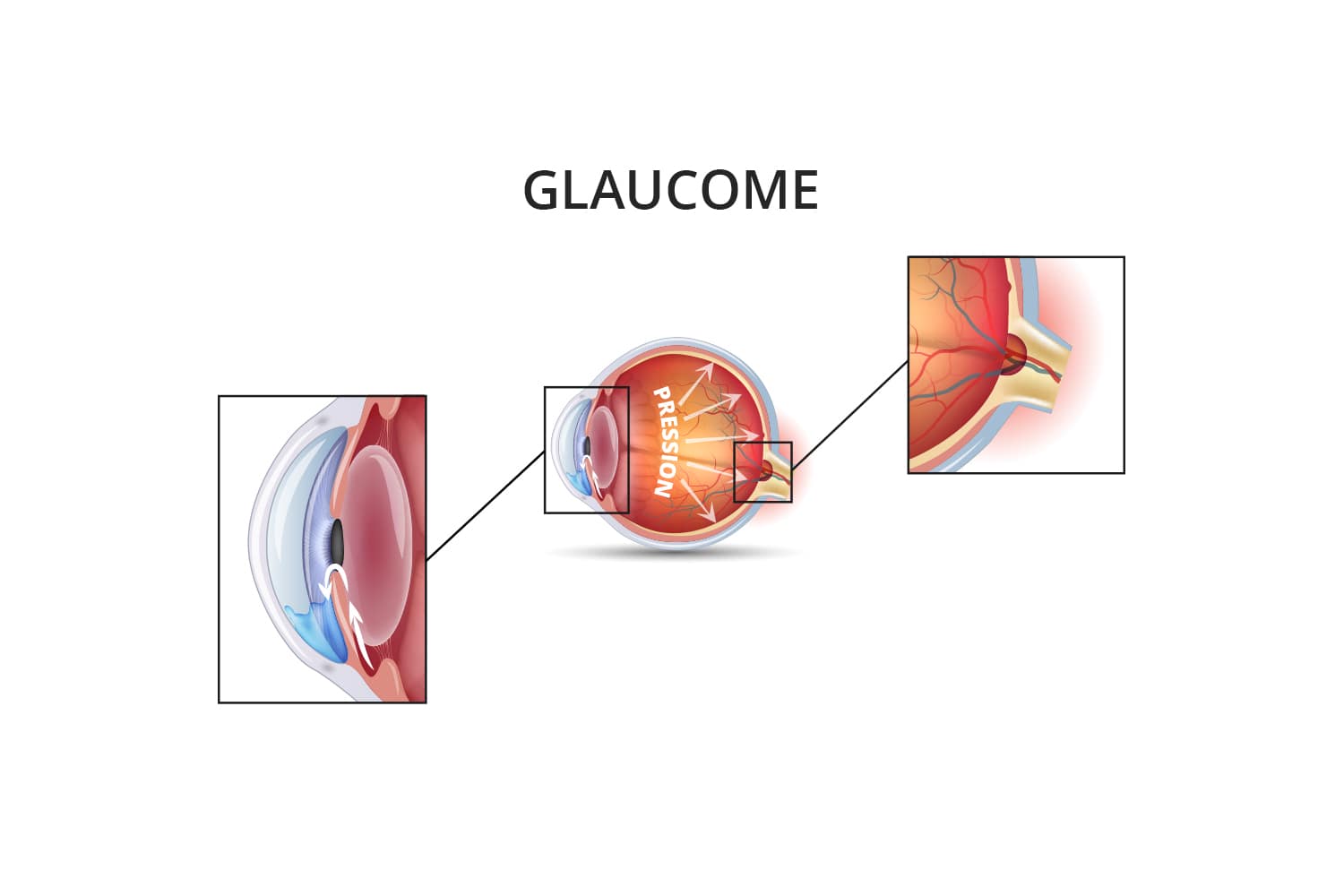 Dans la plupart des cas, le glaucome est lié à une augmentation de la pression à l’intérieur de l’œil : c’est l’hypertonie oculaire (la PIO normale se situe entre 10 et 21 mm Hg).
